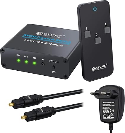 Esynic 3×1 Switch Toslink Spdif Con Ir Telecomando Switcher Commutatore Audio Digitale Ottico 3 Ingressi 1 Uscita Con Alimentatore E Cavo Ottico Amazon It Elettronica